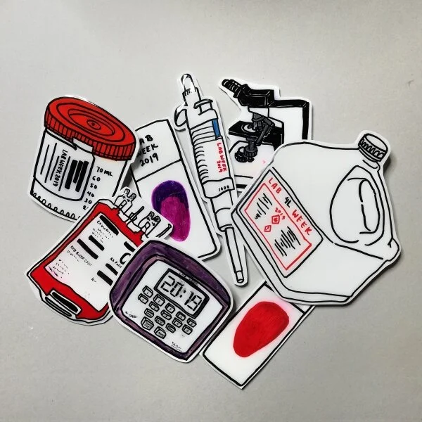 When I am not making art, working as a medical lab technologist (MLT) is my “day job” (though in a 24/7 lab, we work all times of day). In other countries, I might be known as a biomedical scientist, which I personally think sounds way cooler than technologist. Regardless of the title, our role in a patient’s healthcare journey is to analyze samples and provide results that will help healthcare professionals make decisions about a patient’s care. If you ever wondered where your blood, urine, and other samples disappear to following collection, it’s most likely ending up in the hands of an MLT.